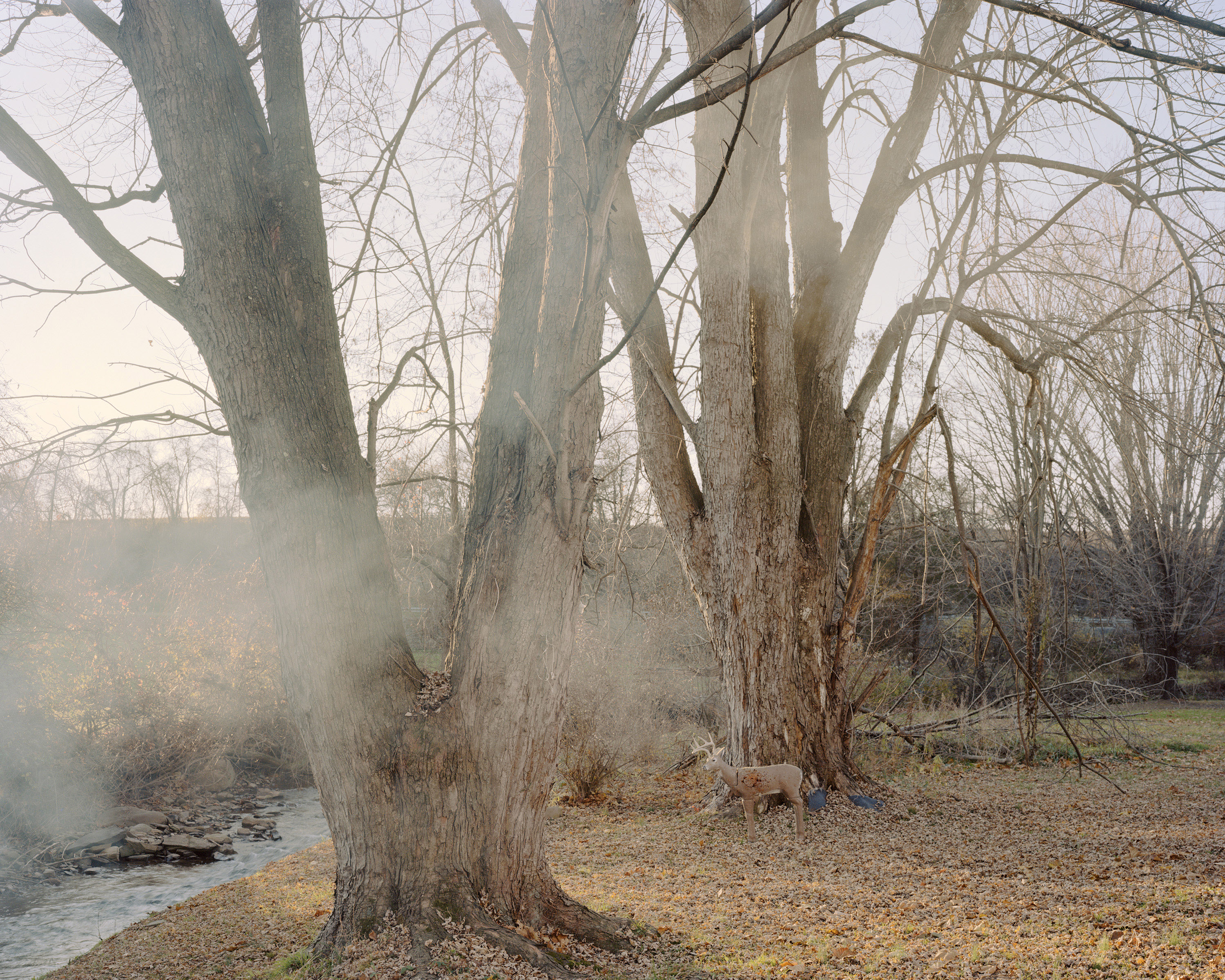 These images show the domesticated landscape in a part of Pennsylvania which is often overlooked.  They exhibit the intense beauty of realism not the easy version of a Beautyland.  That beauty lives in the way color, light and atmosphere transform the ordinary into the extraordinary.  Welch wants her viewers to feel the awe and melancholy she did seeing the deer target in the late afternoon light through the smoke of an autumn fire and to feel disquieted by the irony of the lawn mower in the wilderness.  For her, the Road of Never-Ending Delight is beautiful in its ambiguity and complexity.